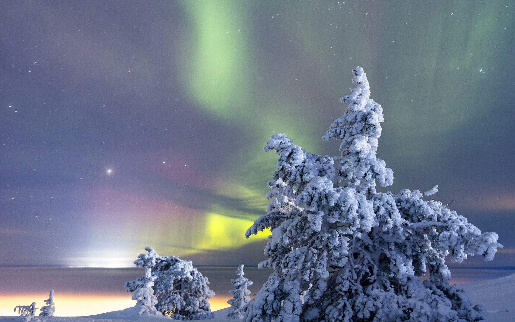 Lapland is ideal for aurora hunting. Top locations include Saariselkä, Levi, Inari, and Muonio – all known for dark skies and peaceful landscapes far from city lights.