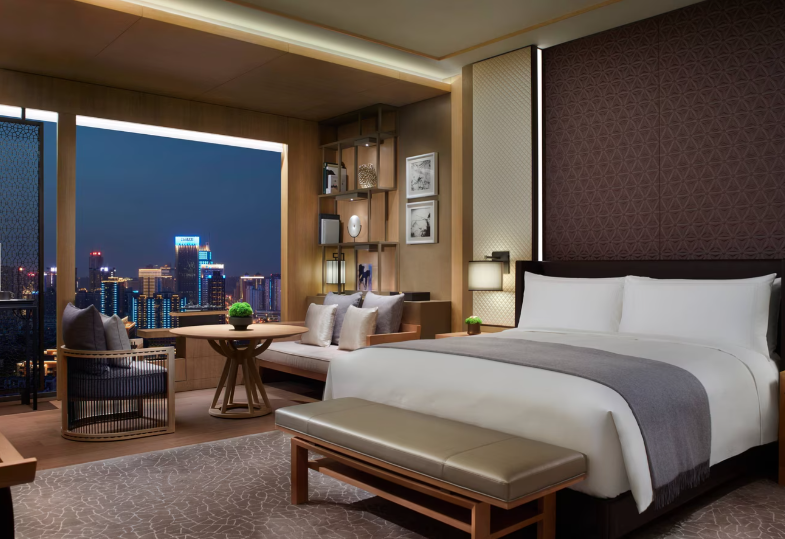 Located in the bustling business district, The Ritz-Carlton Xi’an blends modern sophistication with subtle Tang Dynasty cultural touches. A highlight is its rooftop bar, offering sweeping views of the city skyline.
