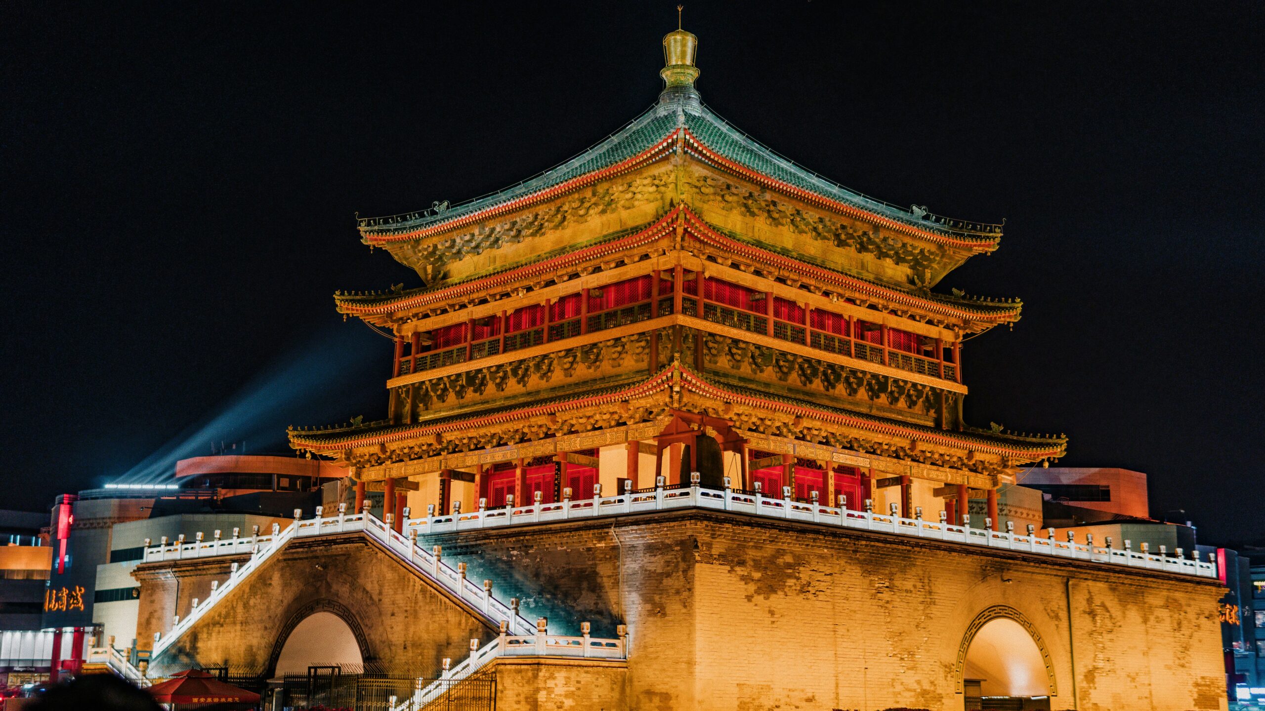 Located in the heart of the city, the Bell Tower and Drum Tower are iconic symbols of Xi’an. The Bell Tower was built to mark the morning hours, while the Drum Tower signaled the evening. Both structures feature stunning architecture and are beautifully illuminated at night, creating a magical visual display.